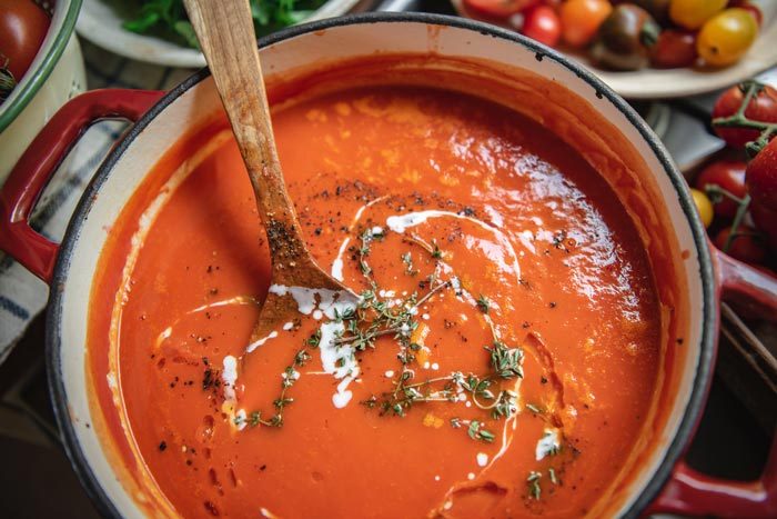 - Servimos nuestra crema caliente, decoramos con la tortilla que preparamos.